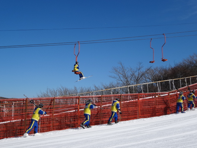 昨日の夜はぐっすり眠った人も多いみたいです。朝食の後、御在所スキー場に向かい、スキー実習2日目が始まりました。