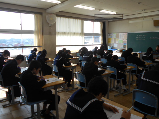 2~6限は、1・2年生は実力テスト、3年は教科授業が行われました。休み明けでしたが、6限までしっかりと取り組めました。