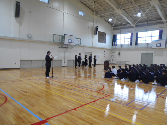 あいさつ、そうじ、時間の3つの重点目標を共に言い聞かせつつ、保々中は平成29年度の海へ出港しました。