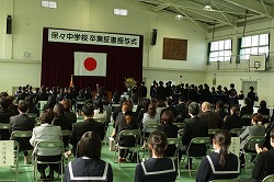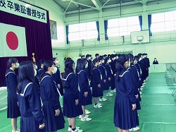 令和4年度卒業証書授与式が終了しました。3年生は保々中学校を旅立ち、未来へ、社会へ向かいました。中学を入学した1週間後に臨時休校(4月15日から5月17日)となり、部活動を始めたのは6月になってから、夏休みは3週間でした。2年時には9月1日から15日までやはり臨時休校となりオンラインでの授業が行われました。多くの行事が中止や変更を余儀なくされ、生活自体も多くの制限が課されました。中学校生活は「新型コロナウイルス感染症」に翻弄されたといっても過言ではありません。そのような中にあっても、生徒は前を向き、できる限りを精一杯やってきました。「仲間の大切さ」はいつも変わりませんが、今回も再認識しました。「当たり前」のことを「当たり前」にできる喜びも感じました。