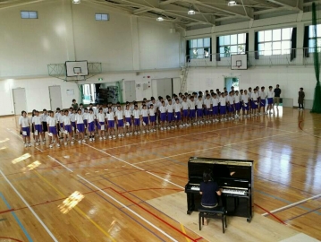 準備のあと、井上から「3年生としての自覚とプライドを持って」「人を感動させる歌を」との話があり、1,2年生のいい見本となるよう意識をしました。