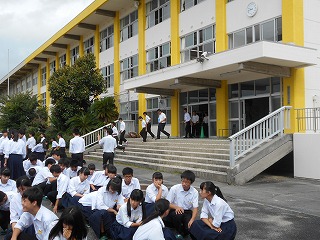 そのあと、震度6の地震を想定した避難訓練を行いました。1学期の訓練時よりも集合・点呼をスムーズに行うことができました。