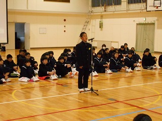 その後、プラザ学習の紹介を、プラザ学習に参加している生徒代表からしてもらいました。1年間の取り組みを、写真を入れながらわかりやすく説明しました。参加する生徒の輪が広がっていくといいですね。