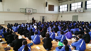 1限目は体育館で始業式を行いました。校長先生から今年度を締めくくる3学期をどう過ごしていくのかの話をしていただきました。また、学校生活について、日夏先生から話をしていただきました。始業式後は、1・3年生は通常の教科授業、2年生は実力テストを行いました。新学期初日から、6限フルにありましたが、生活リズムを早く取り戻していけるといいですね。