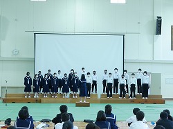 本日、縦割リハーサルがありました。1年生は初めて自分たち以外の人に聞かせるということで緊張した様子でした。上級生の合唱も踏まえ、自分たちの反省点や改善点を考えていました。あと1週間の練習に生かしていきましょう。