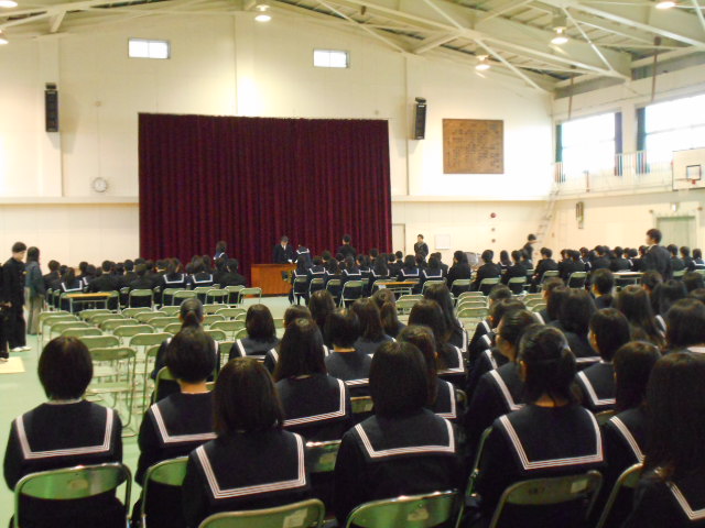 3月7日(月)、午前中、1限は3年生、2限は1・2年生、3・4限は全校で卒業式の前日準備を行いました。卒業式を明日に控え、心に残る卒業式になるよう、起立や礼の仕方、卒業証書授与の練習、式歌練習等に真剣に取り組みました。3年生とは明日でお別れになり、さみしさを覚えますが立派な卒業式になるよう準備していきたいと思います。