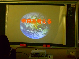 未来について考える」というテーマで、教頭先生に授業をしていただきました。とても新鮮で、いつもとは違った緊張感がありました。地球上の様々な課題を考えていく中で、自分たちに今できること、あるいはこれからできることは何かを考えました。