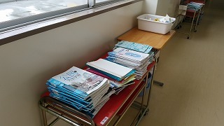 教室の近くを通ると、提出物が積まれていました。明日の分も必ず出すようにしてくださいよ。