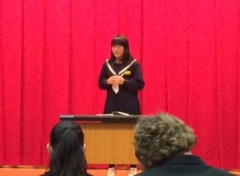 スピーチは、入賞することはできませんでしたが、今までで最高のスピーチを見せてくれました。英作文コンテストの結果は、明日発表されることになっていますので、いい結果であることを願うばかりです。