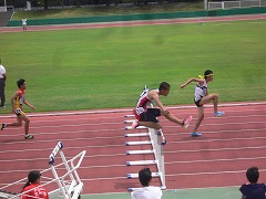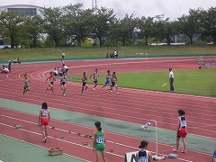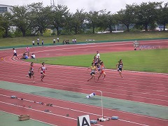 心配していた台風も夜の間に通過し、今日も予定通り、中体連陸上競技の三泗予選が開催されました。今日は、男子は110mH、100mに、女子は100m、走り幅跳び、砲丸投げに出場しました。
