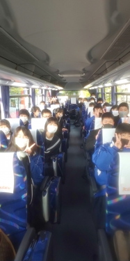 ただいま、3年生修学旅行出発いたしました。天気もよく、生徒たちも程よい緊張感を持ち、目的地を目指しています。良い修学旅行になるようにみんなで協力していきましょう。