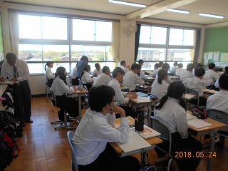 5月24日(木)、昨年度に引き続き、教育アドバイザーの坂倉傳二先生に来校していただいて、2年生の授業を参観していただきました。1限目は平野先生の数学、2限目は中西先生の社会の授業の様子を見ていただき、その後2名の先生にご指導していただきました。この取り組みも授業改善による学力向上を目指したものです。今後もこのような研修を大切にしていきたいと考えています。
