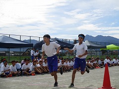 昨日までは高気温のため練習を中止したり、雷により準備が思うようにできなかったりして、準備や練習が満足にはできませんでしたが、全校生徒が全力で競技・演技をし、係の仕事も立派に果たし、見ている人たちの感動を呼んだすばらしい体育祭となりました。気温もさほど上がらず、時折涼しい風も吹く中で、大きく体調を崩す生徒もなく、無事に体育祭を終えることができました。