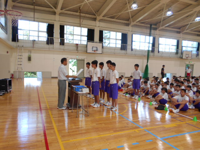 終業式後には、1学期の表彰伝達を行いました。賞状を校長先生から受け取り、全校生徒から拍手が贈られていました。