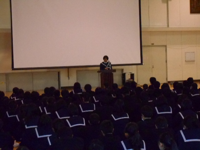 12月7日(月)、5限目に表彰伝達と生徒集会を開催しました。
