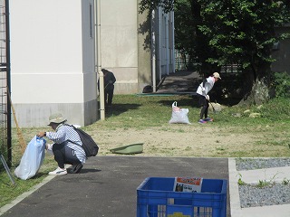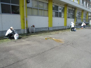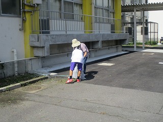 7月22日(土)除草作業を行いました。10名ほどのボランティアのみなさんと9時から1時間ほど草刈り、草集めをしました。雨上がりでしたが時間が経つにつれジリジリ、蒸し蒸しと暑さがましてきて汗だくでの作業でした。校舎裏側を中心に活動しました。1時間でしっかりと草がとれました。ボランティアに参加していただいたみなさん、本当にありがとうございました。
