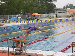 今日、霞ケ浦プールで水泳の中体連新人大会がありました。本校からは1年生の前川優愛さんが出場しました。前回の大会では自由形での出場でしたが、今回は自由形に加え、平泳ぎでも出場しました。新人大会は学年別で上の大会がなく三泗地区だけの大会でしたので、出場選手も少なく、中には一人で競技している種目もありました。前川さんは出場種目の間隔が短く、1種目めが終わってすぐ2種目めに出場しなければならず大変でしたが、健闘し2種目とも2位入賞の成績をおさめました。競技結果の詳細は次のとおりです。