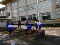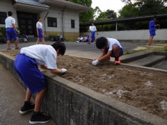 5月29日、環境福祉委員会でひまわりの種まきとプランターの整理をしました。