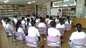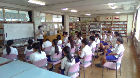 今日は図書館司書の田端さんにお越しいただき、ブックトークを行ってもらいました。「夏休みにおすすめの本」と題して、様々な本を紹介していただきました。読書感想文や郷土研究、自由研究のヒントになるような本もたくさん紹介していただきました。その中でも、保々の歴史についての文献には皆さん興味津々でしたね。この夏は受験勉強等で大変な時期だと思います。そんなときにホッと一息つけるような本をこの機会に探してみてはどうでしょうか?よき夏のお供に…。