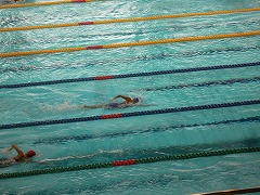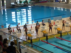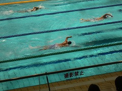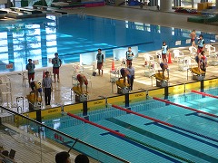 3年生の前川光翼さんは、序盤は上位に食い込む泳ぎをみせ健闘しましたが、三泗地区予選大会の記録を上回ったものの、残念ながら予選敗退となりました。1年生の前川優愛さんは、予選を5位通過し、午後の決勝でも善戦し予選を上回る泳ぎをみせましたが、6位となりました。この種目の上位者が他種目で東海大会に出場するため、繰り上がりで東海大会出場となりました。おめでとうございます。選手の2人はよく頑張ったと思います。お疲れさまでした。今日の競技結果は以下の通りです。