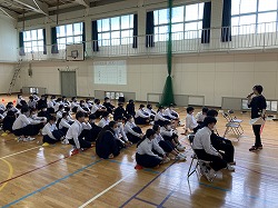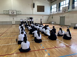 今日は、体育館にてリーダー会よりバス・新幹線内でのルールや分散学習時のルール等の確認がありました。