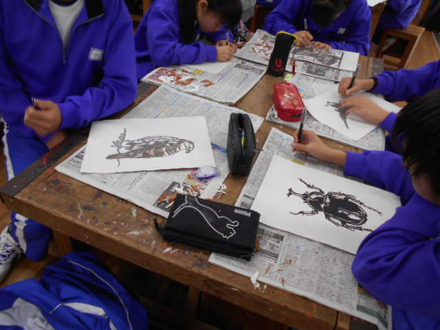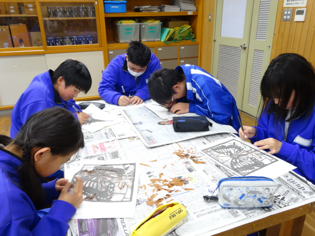 自然教室3日目、いよいよ活動も残りわずかとなってきました。今日の午前中は伊勢型紙づくりに挑戦しています。みんなこまかい作業にしっかり集中してとりくんでいました。根気よく作業して、完成させましょう。