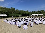 本日6限目に、生徒会種目の練習が第2グラウンドで行われました。各チームのリーダーである3年生が中心となって、練習をしていきました。初めて練習したときよりも、足並みがそろうようになってきましたし、走っていないときでもゴールに向けて応援する姿がよく見られるようになってきました。体育祭まであと1週間、良いものにしていきましょう。