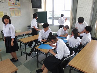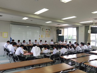 6月6日放課後に第3回生徒議会がありました。各委員会からの報告と6月17日の生徒集会の話をしました。その後、各クラスの学級委員で学年の6・7月の目標を決めました。