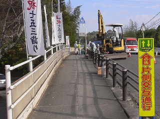 今日11月12日(月)、保々中学校のすぐ北の城下橋の南側の道路(横断歩道付近)と北側の歩道の舗装工事があります。作業時間は8:30~17:00の予定で、天候がよいので今日一日で工事は完了すると思います。開始時間は小中学校の児童生徒が登校し終わってからですが、下校時には工事中となります。工事関係者がついて危険がないよう誘導してもらうことになっていますが、学校からも子どもたちに注意喚起しています。道路も片側交互通行となっていますので、地域のみなさんもお気をつけください。