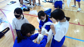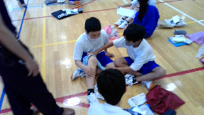 後半は、応急手当てや救命方法を実際にレクチャーしていただき、体験しました。