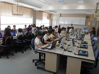 月曜日と火曜日には、保々小学校の体育館で、5年生のバレーボールの授業を行いました。小学生ということで、ソフトバレーボールを使って、基本動作の練習を行っていました。木曜日には、保々中学校のコンピュータ室で、4年生のコンピュータの授業を行いました。コンピュータプログラミングの入門的な内容で、コンピュータで書いたプログラムでロボットカーを制御し動かす内容でした。どの児童も、真剣に取り組んでいました。数年後、保々中学校に入学後も、頑張ってくださいね。
