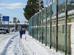 さて、明日は第5回目の学校オープンデーです。8時30分から16時30分までが参観時間です。お時間よろしければご参観ください。また、新入生の保護者説明会、物品販売、制服採寸なども予定しています。積雪などによってグランド状況が芳しくありませんが、新入生保護者の皆さま、第1グラウンドが駐車場となります。お気をつけてお越しください。写真は本日朝から雪の状況等です。
