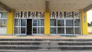 昨日の放課後、生徒会の皆さんが体育祭を盛り上げるために正面玄関に今年の体育祭スローガンを作成してくれました。力強い字体に意気込みが感じられます。10月6日、体育祭本番です。地域の皆さまもぜひ生徒が躍動する姿を観覧におこしください。