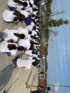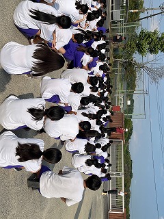 本日、掃除の時間に地震を想定した避難訓練を行いました。教室ではなく、それぞれの掃除場所からの避難となりました。速報がながれるとその場で身の安全の確保をし、避難の放送が入ると一斉にグラウンドへ避難をしました。4分以内の避難完了が目標でしたが、3分8秒で全員が避難を完了しました。講評で校長先生からは宮城県石巻市立大川小学校で起きた悲劇を取り上げ、実際に地震が起きた時、この訓練を活かした行動ができるかどうかを考えていくことが大切であることを話してもらいました。命を守る行動を考え続けていきましょう。