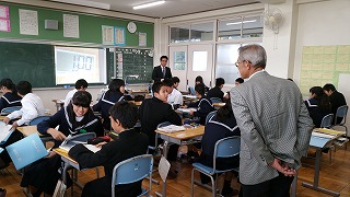 11月16日(木)、教育アドバイザーの坂倉先生が来校され、授業を参観していただきました。1限目に水谷先生の1年生保健体育、3限目に平野先生の1A数学を参観していただき、授業についてそれぞれ助言をいただきました。助言いただいたことを、これからの授業に活かしていけるよう、教材研究等に努力を続けていきたいと思います。