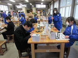 技術・家庭科では「ものづくり」に関する学びの充実を図っています。本日3年生では、技術の授業で携帯型ラジオ(Bluetoothスピーカー付)を、また、家庭の授業では箸袋をそれぞれ作っていました。はんだや裁縫道具を使い、それぞれの技能を習得しながら「オリジナルのラジオ・箸袋」を作成することで、ものづくりに対する思いが深まり、ものに対する愛着も生じます。「使い捨て時代」「大量消費」の時代と言われ久しいですが、ものをつくり、愛着を持って末永く使用することはSDGsの目標の一つでもあります。