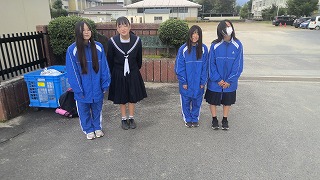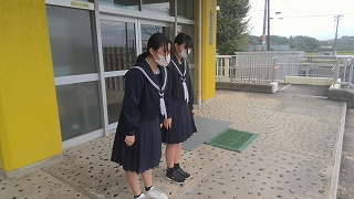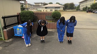 本日、登校時にPTA環境部会のみなさんが保々地区4か所の交差点で生徒のみなさんが安全に登校できるように安全旗を持って見守っていただきました。また、学校正門前、各玄関前で生徒会、保体委員会のみなさんが笑顔とあいさつで登校するみなさんを出迎えてくれました。今日もたくさんの保々笑(ほほえみ)を!