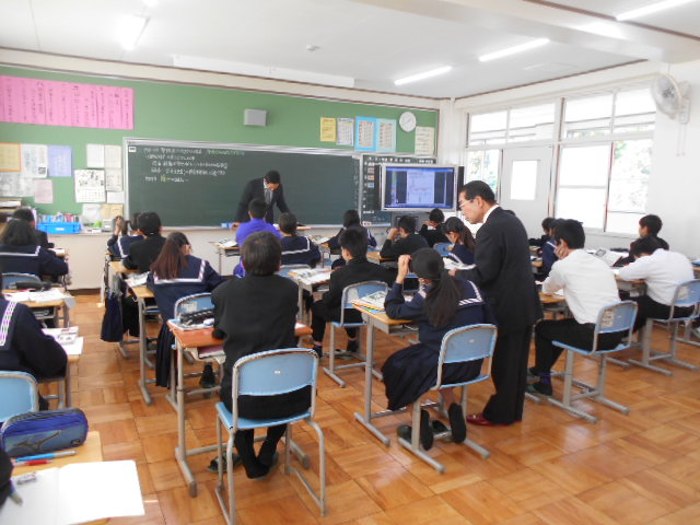 11月17日(木)、教育アドバイザーの宮崎先生の学校訪問がありました。1年生A組・C組の授業を参観していただき、授業改善のためのアドバイスをしていただきました。期末テストも迫っており、生徒もしっかり授業に取り組む姿が見られました。