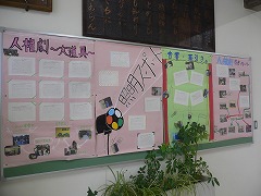 職員玄関を入ってすぐ左の掲示板と、職員室前廊下の掲示板に人権劇の壁新聞が掲示されています。昨日の放課後、今年の新聞が完成し、今年バージョンに貼り替えられました。保々中学校ではこれまで人権劇が大切にされ、劇後の各学年の人権学習でも取り上げながら、全校生徒がなかまのことや社会にあるさまざまな人権問題について学習する機会となっています。保々中学校の生徒の皆さんや来校者の方にもこの人権劇のことを知ってもらえるように、職員玄関の掲示板に1年間掲示しています。生徒の皆さんはもちろんのこと、また来校される保護者や地域の皆さんも来校されるときには、ぜひご覧ください。
