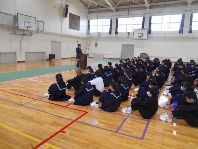 3月24日(金)、表彰伝達の後、本年度の修了式を行いました。最後の式というだけあり、全員しっかりとした態度で式に臨んでいました。校長先生から本年度の総括と来年度に向けての話をしていただきました。また、井上先生から春休みの生活について話をしていただきました。4月からいいスタートがきれるよう気持ちを整えていってほしいと思います。