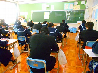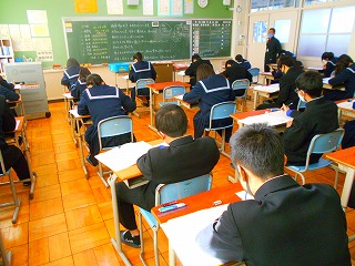 写真は実力テストの様子です。冬休みで培った力を存分に発揮してくれたようです。この後も、まだ卒業テストがありますので、引き続き、気を引き締めて頑張っていきましょうね。