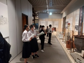 ホールで元患者さんの証言映像を見せていただき、学芸員さんから解説もしていただいた後に、展示資料を見学しました。どの生徒も、真剣に学習していました。