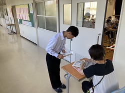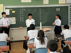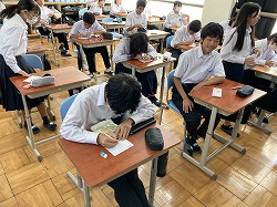 体育祭が終わり、その反省をしました。今回は3年生が中心となって引っ張っていった縦わり種目が初めて実施されました。同じチームのメンバーに向けて、ありがとうメッセージを書きました。下級生に見本となる姿を見せることができたのではないでしょうか。