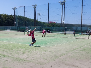 7月22日、川越町民テニス場で桑員地区と県大会出場をかけたプレーオフが9時30分より行われました。