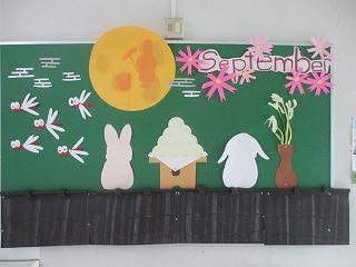 2学期が始まりました。文化部が毎月作成している作品を紹介します。季節感のあふれる掲示板作品です。これから毎月紹介していきます。お楽しみに。