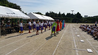 秋晴れのすがすがしい空気とさわやかな風の中、予定通り9時より体育祭を開催しています。生徒が自ら創出してAnivorsaryを築く体育祭の始まりです。
