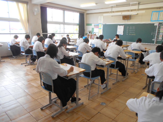 3年生は、第1回実力テストで、国・数・社・英・理の5教科に取り組んでいます。日々の日々の取り組みを確認する機会になり最後までやり切り、終わってからもしっかりと復習をしていくことが大切です。
