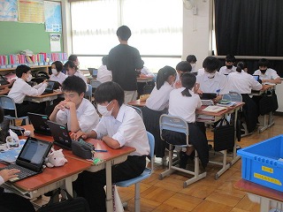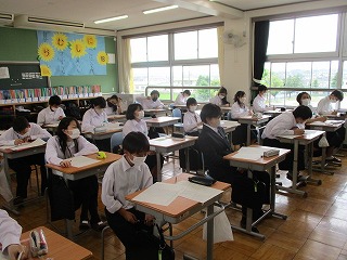 本日、6月21日(水)~23日(金)に行われる期末テストの発表がありました。計画的に準備をして1学期に学んだことをしっかりと振り返りましょう。写真は6限目の各クラスでの総合的な学習の時間の様子です。3年生は修学旅行のまとめとしてのプレゼンテーションを作成していました。2年生は新しい班編成、係分担、テスト計画作成を行っていました。2,3年ともに和気あいあいとした雰囲気で取り組んでいました。1年生は初めての3日間のテストということで真剣にテスト計画を作っていました。どの学年も無理のないように準備を進めていきましょう。