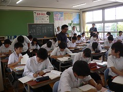 今日の3,4限目に教育委員会の先生方3名に来ていただきました。3限目の全クラスの授業を参観してもらいました。その後、校長室で3名の先生方からご指導いただきました。授業の進め方や仲間づくり、生徒理解、小学校の連携のあり方など、多くのことを学ぶことができました。ご指導いただいたことは、全職員で共有し、日々の学校教育活動に生かしていきたいと思います。