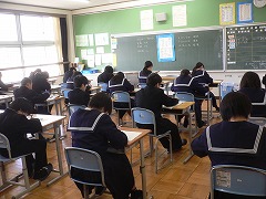 今日から3日間、1,2年生は今年度最後の定期テストである学年末テストです。今年度1年間の総まとめとなりますから、生徒の皆さんもしっかりと準備してきていると思います。各クラス、真剣にテストを受けている様子が伺えました。